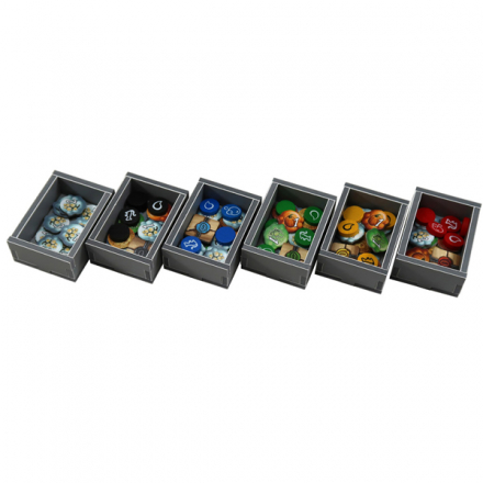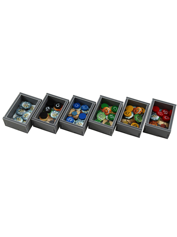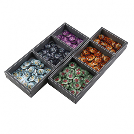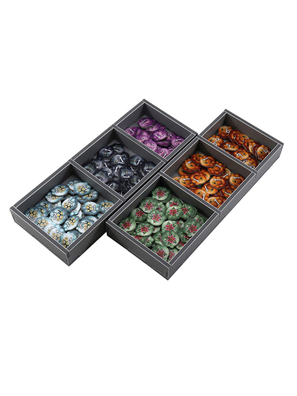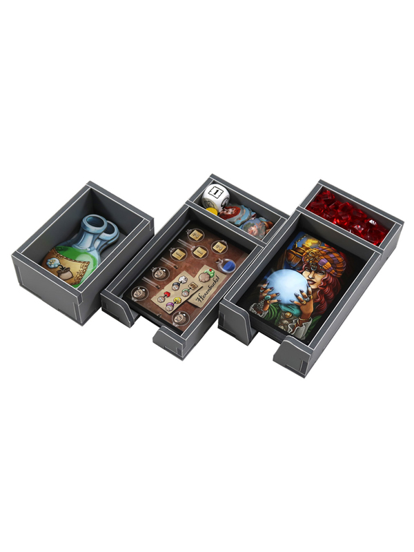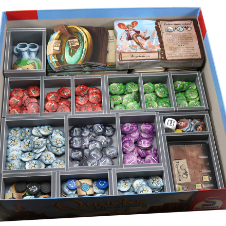 Легкий и удобный органайзер к игре "Шарлатаны из Кведлинбурга" позволяет хранить компоненты игры в порядке. Уменьшить время на подготовку для игры и может использоваться во время игрового процесса.