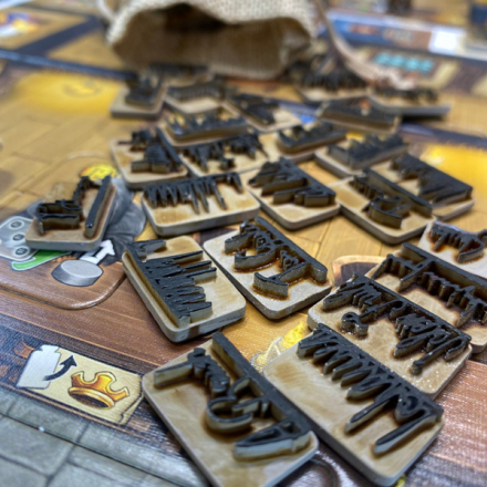Покращ свої враження від гри “Таверни Тіфенталя” з цими чудовими токенами підписів. Даний набір замінить картонні жетони підписів для модуля 5.