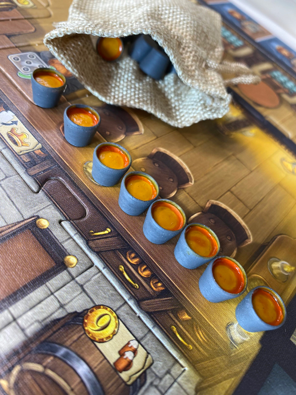 У комплекті 76 преміальних фішок: фішки для підрахунку пива, талерів, маркери монастиря, маркери репутації для кожного з гравців (по 4 фішки для кожного), 20 фішок шнапсу та 40 фішок підписів (+1 додаткова запасна фішка).