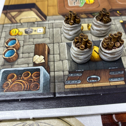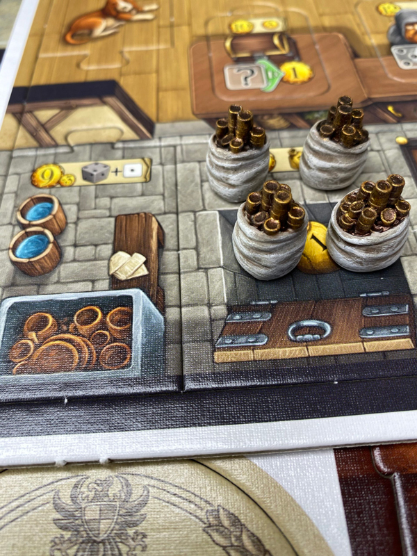 Вміст: 76 преміальних фішок: 4 діжки (18х15 мм), 4 мішечки з талерами (20х15 мм), 4 маркери монастиря різного кольору (6х16 мм), 4 кухля (13х17 мм), 20 фішок шнапсу (8х10 мм), 40 фішок підписів (+1 додаткова запасна фішка) (5х20 мм) та мішечки для зберігання фішок.