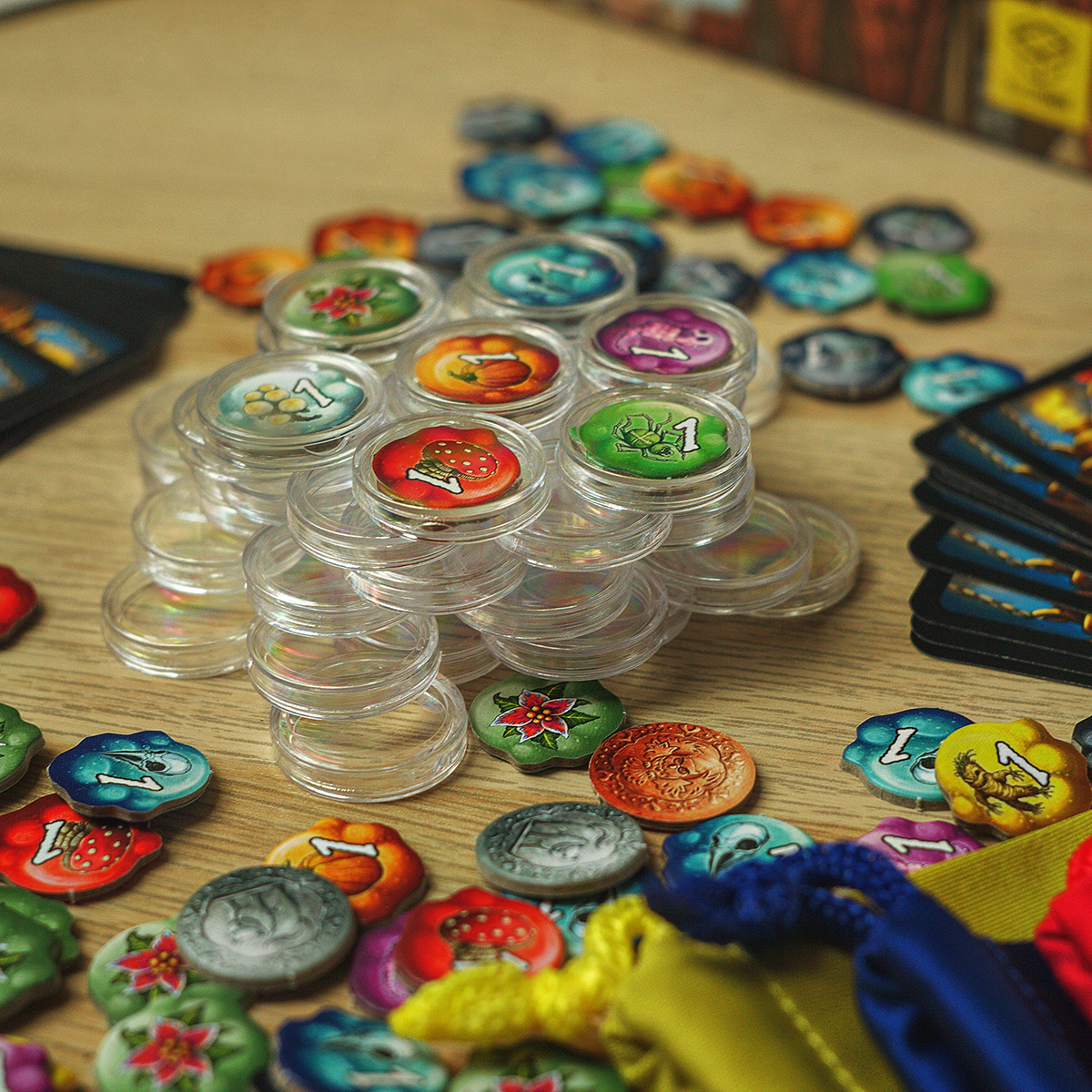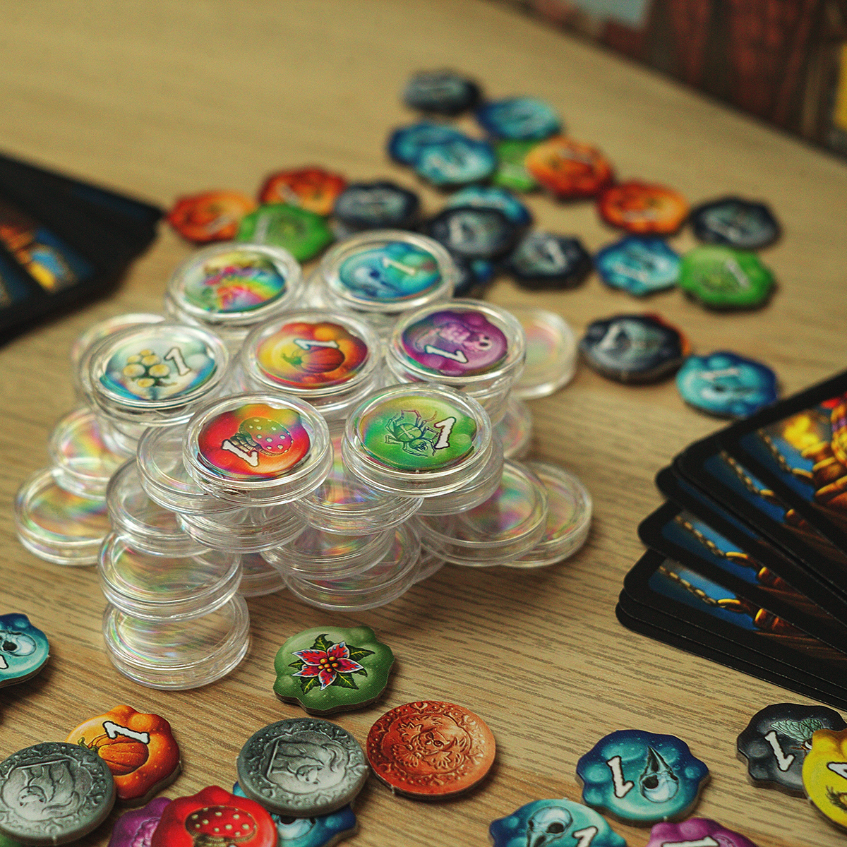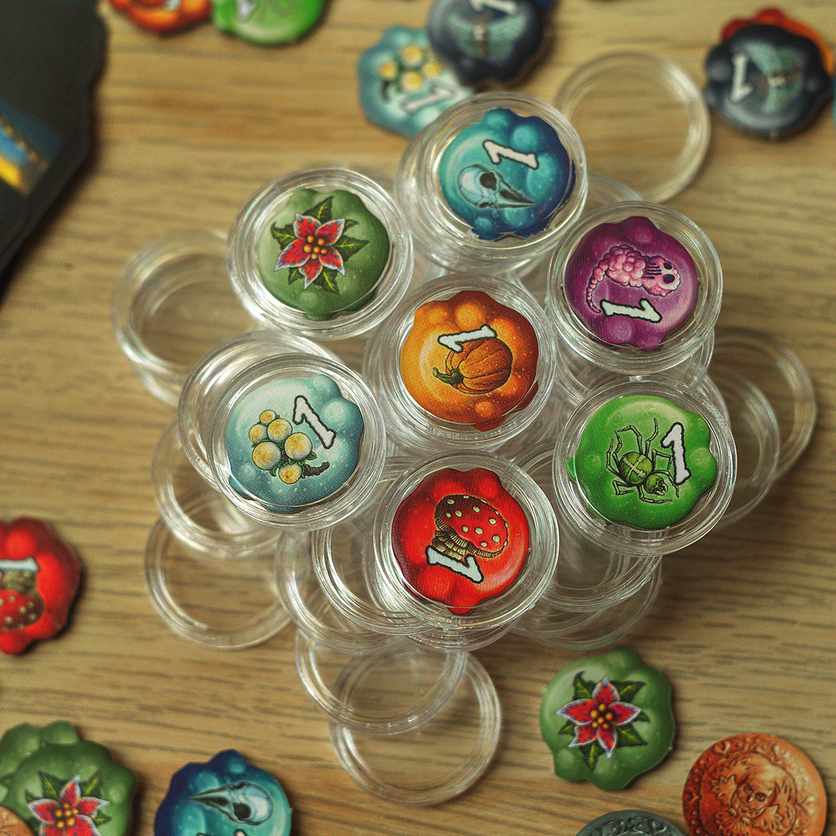 Зверніть увагу, що для базової гри необхідно 219 шт. капсул, для доповнення "Відьми-траниці" - 151 шт. капсул, для доповнення "Алхіміки" - 70 шт. капсул.